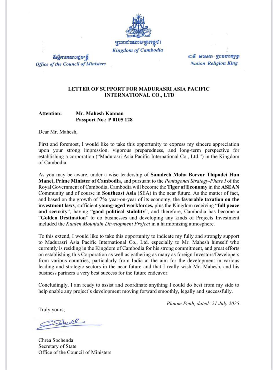 “Our vision is to make investing in Cambodia simple, transparent, and hassle-free for Indian businesses by using technology and strong government partnerships to drive economic growth.”